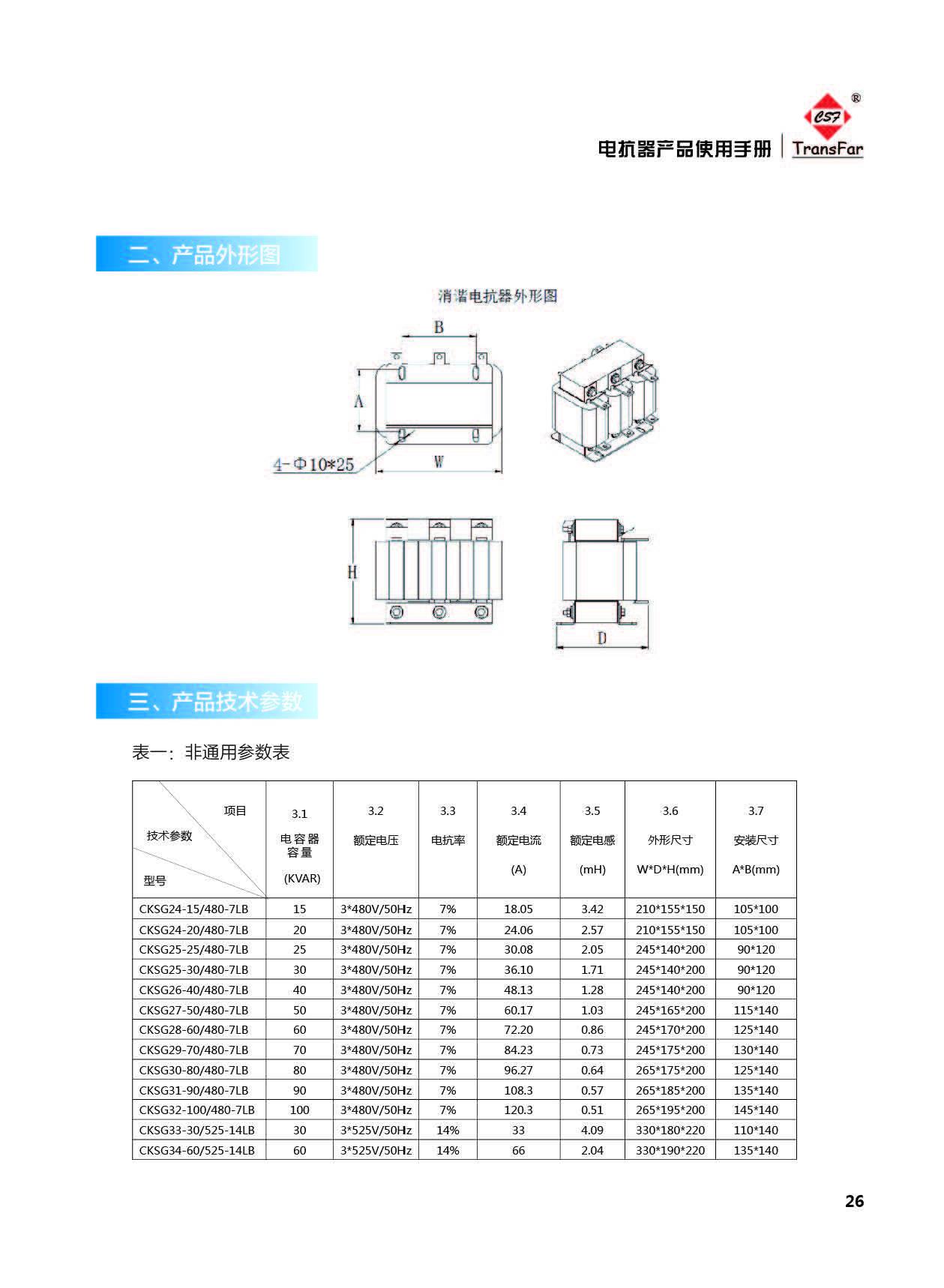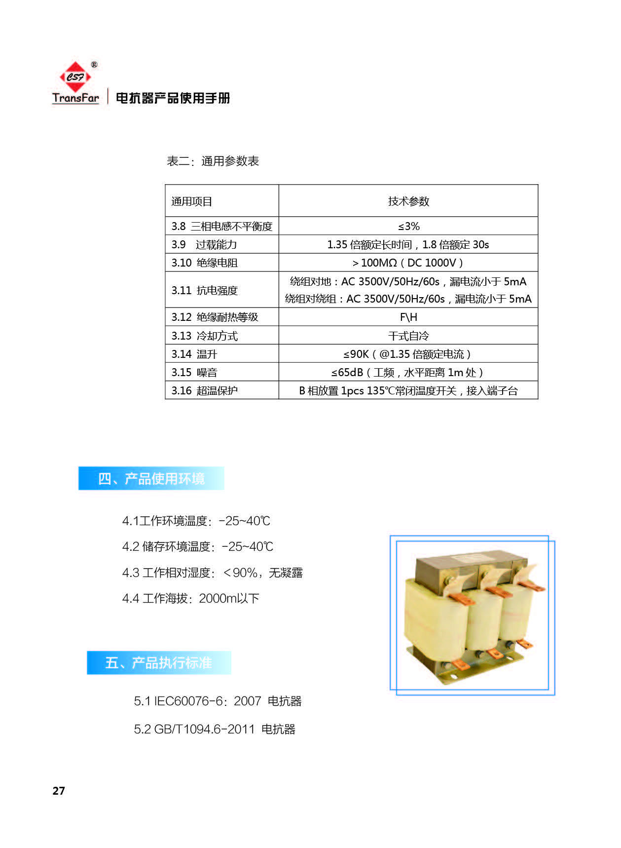 標準產品通用技術參數: