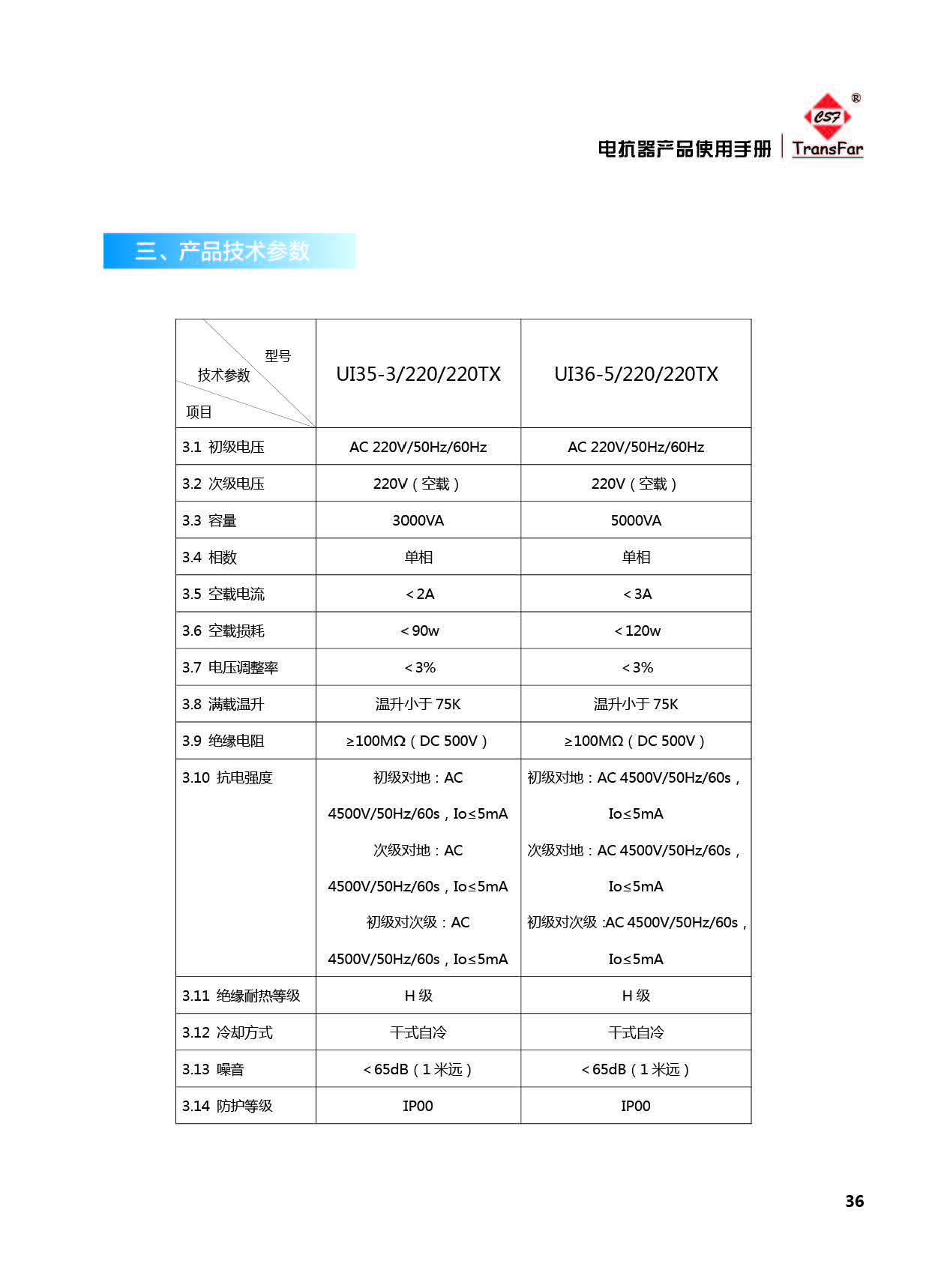 標(biāo)準(zhǔn)產(chǎn)品通用技術(shù)參數(shù):